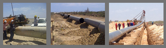 Tendido de Tubería revestida con concreto ø 24” . Aprox. 7 Km. Actividades Civiles, Actividades Mecánicas (Fabricación e Instalación estructura Metálica), revestimiento de juntas
