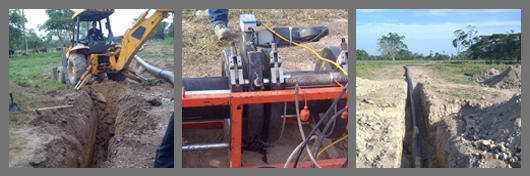 Tendido de Tubería PEAD , DN400, DN300, DN250, DN150; Soldadura, Instalación, Obras civiles y Construcción de Tanquilla del sistema de agua cruda que alimenta al ciclo combinado de planta termolectrica. Apro. 5 Km. El Vgía. Edo. Merida